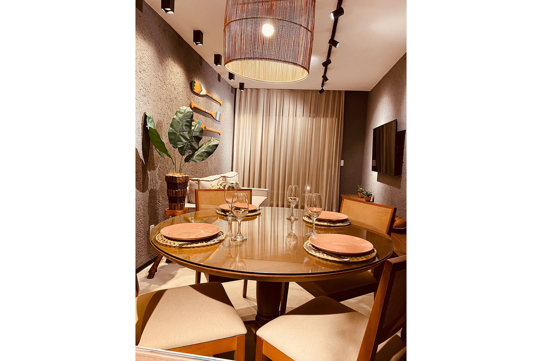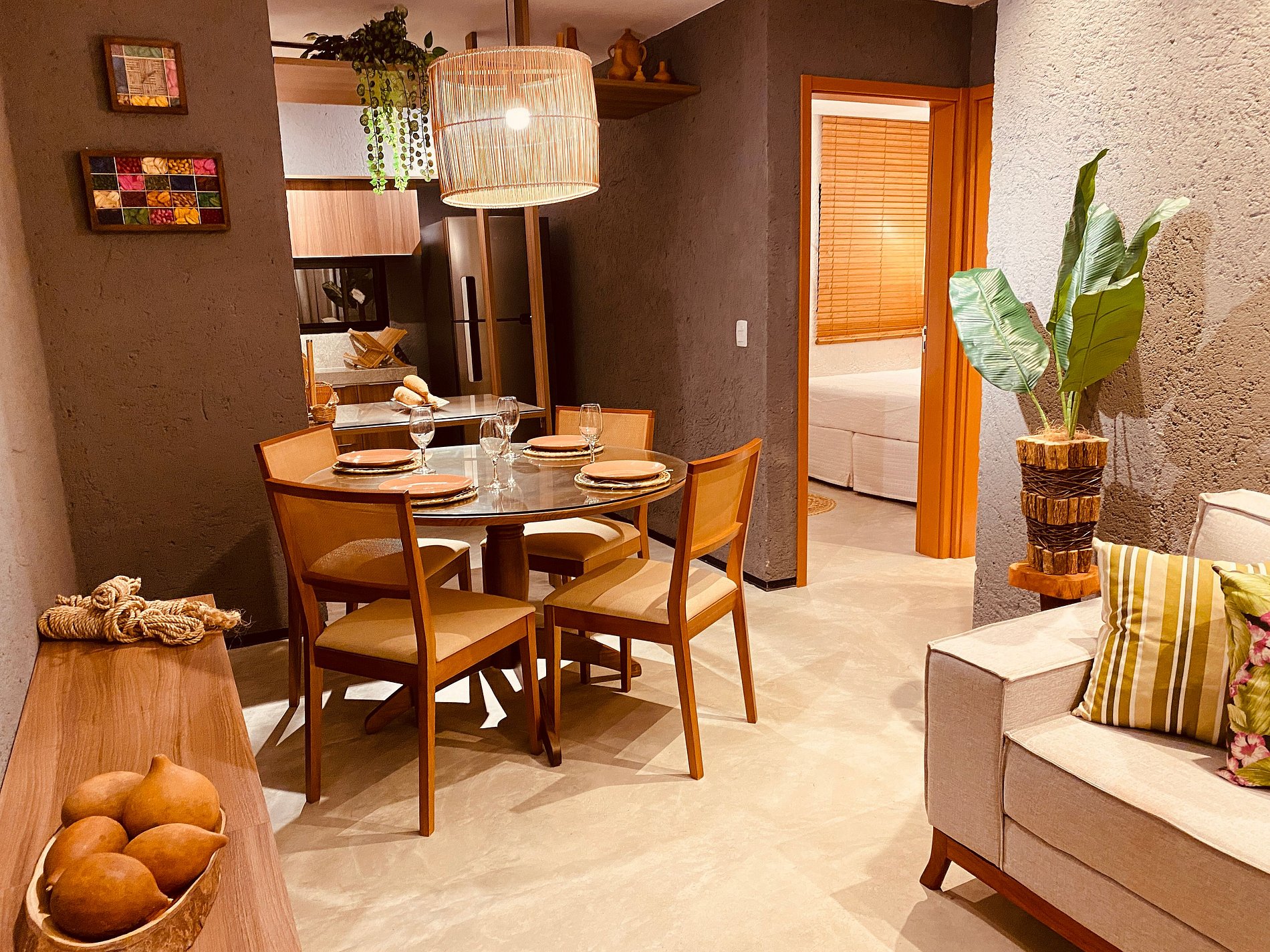 Possui 59m2, sendo 2 suítes, sala de estar com varanda gourmet, cozinha, área de serviço e 01 vaga privativa
