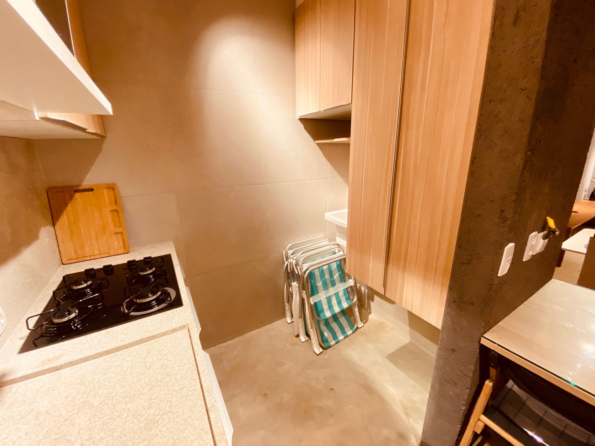 Possui 59m2, sendo 2 suítes, sala de estar com varanda gourmet, cozinha, área de serviço e 01 vaga privativa