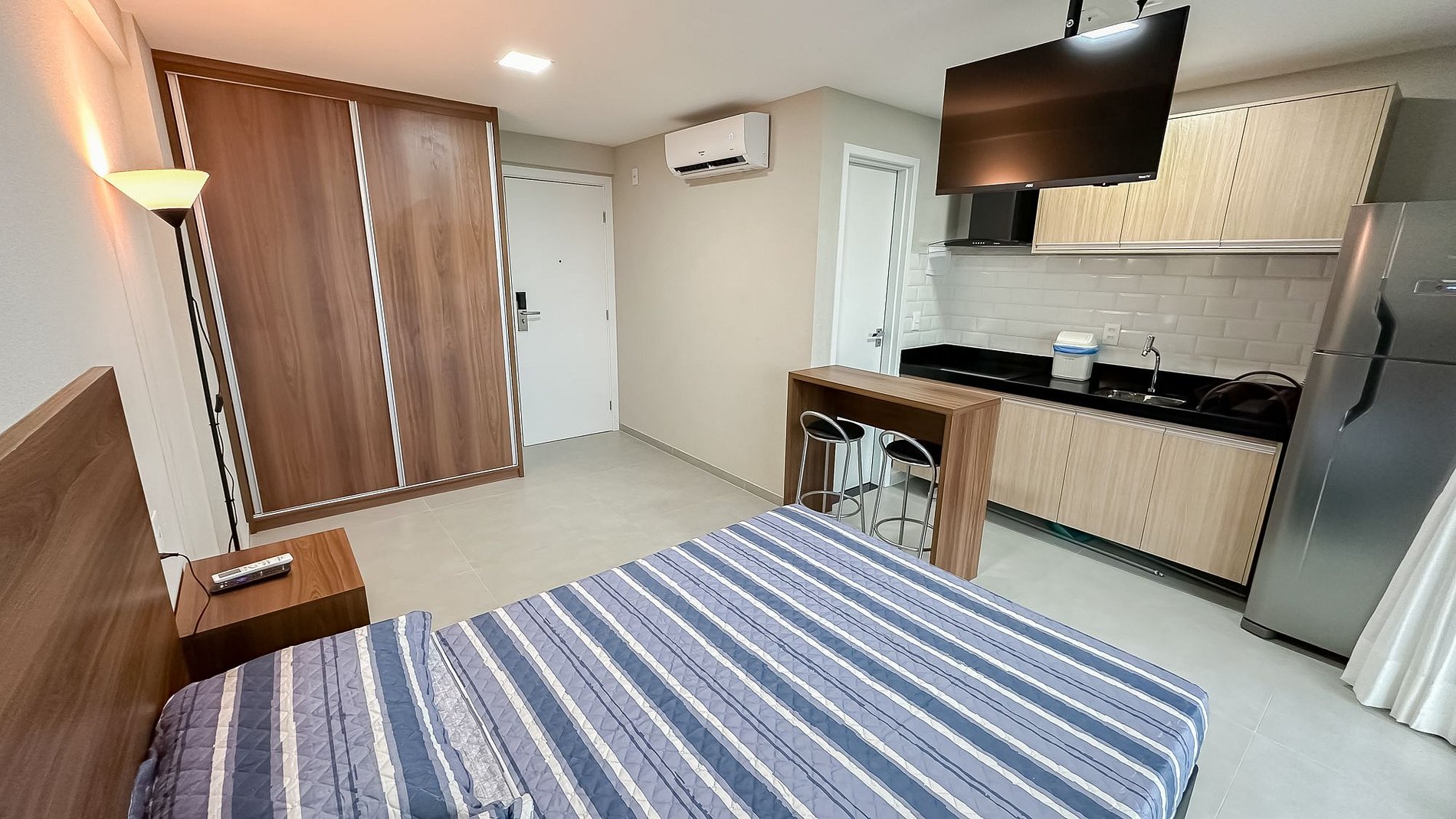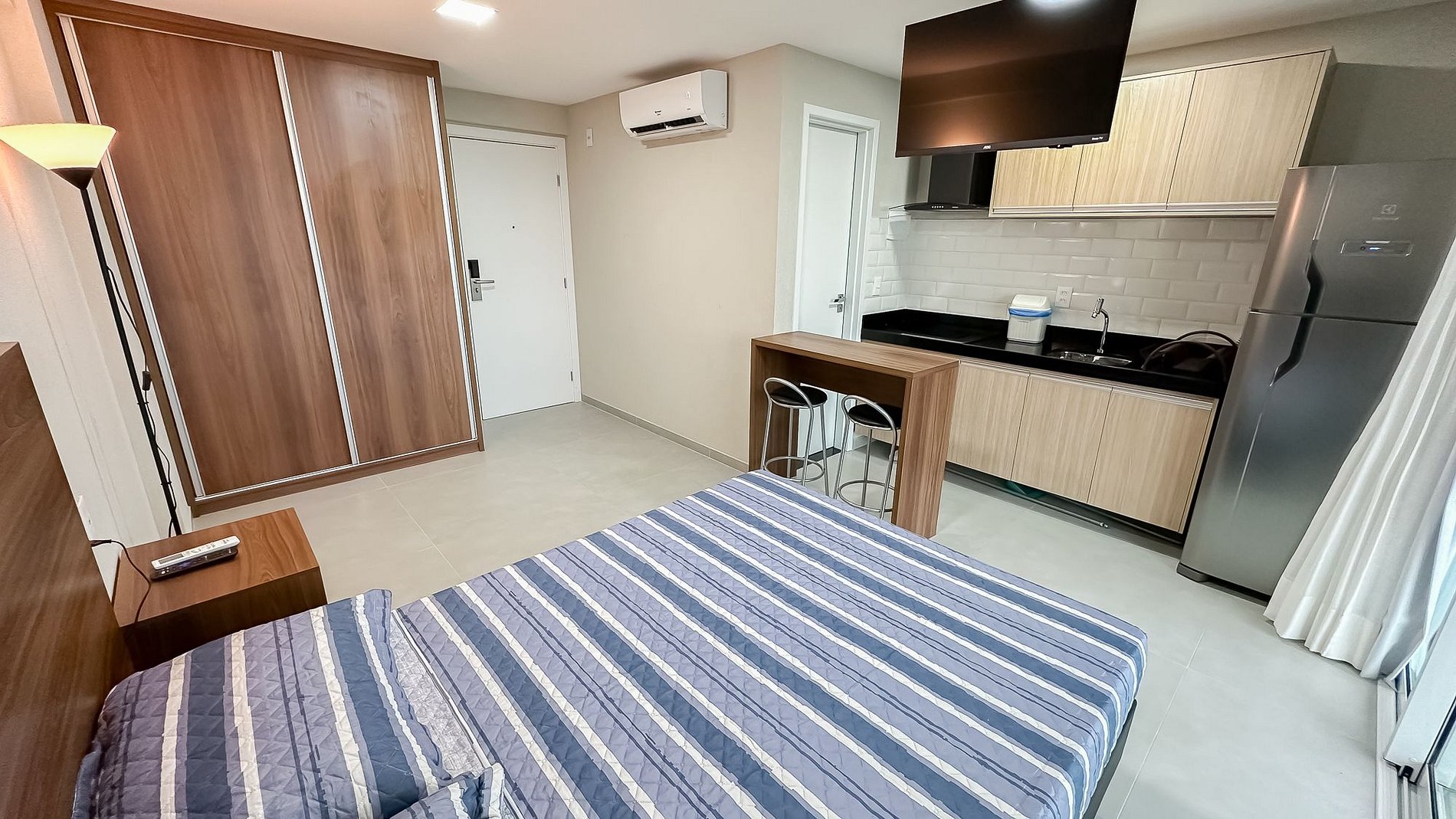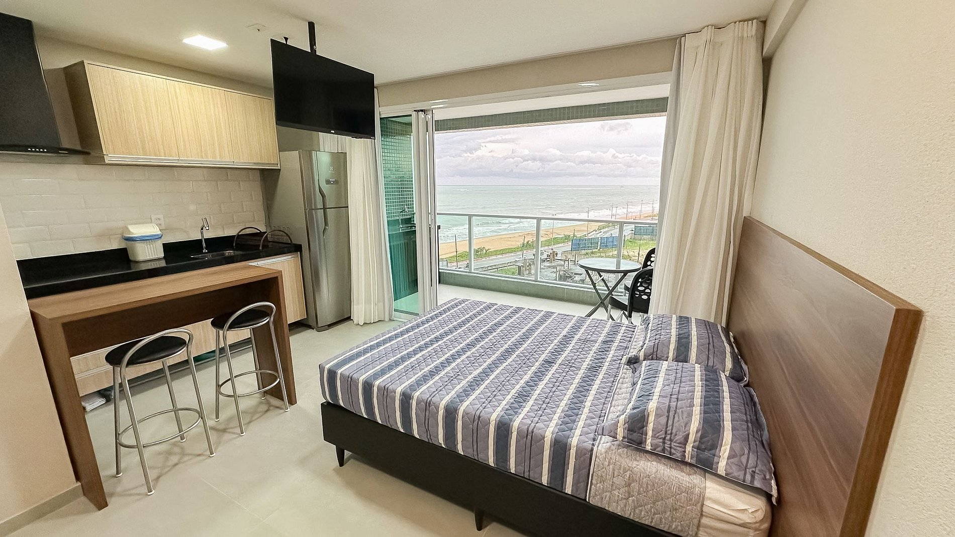 Desfrute do conforto com vista para a praia neste moderno e acolhedor apartamento, que acomoda até 2 pessoas. Cozinha totalmente equipada, ar-condicionado e uma vista deslumbrante do mar. O prédio oferece uma excelente infraestrutura, estacionamento gratuito. Uma experiência única aguarda por você neste refúgio, com um kit de chegada que inclui shampoo, condicionador, sabonete e papel higiênico. Completo com lençóis e toalhas para sua comodidade.