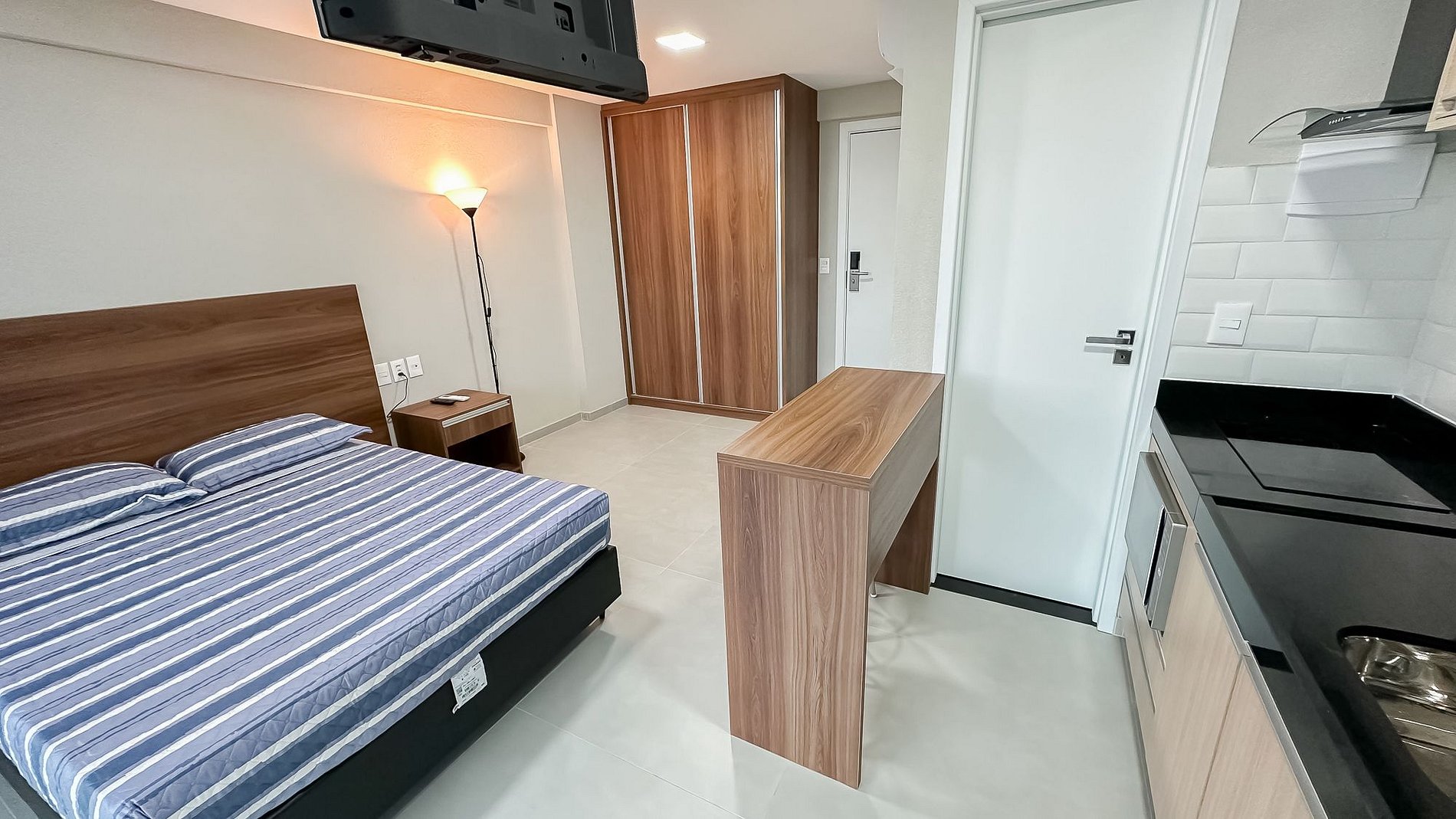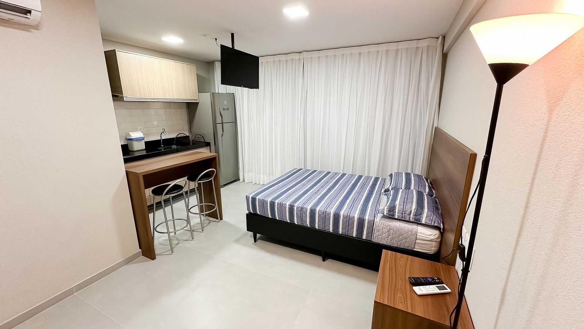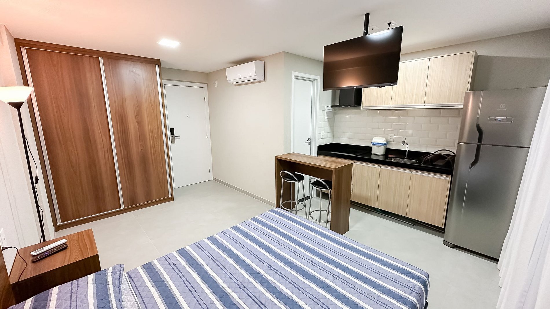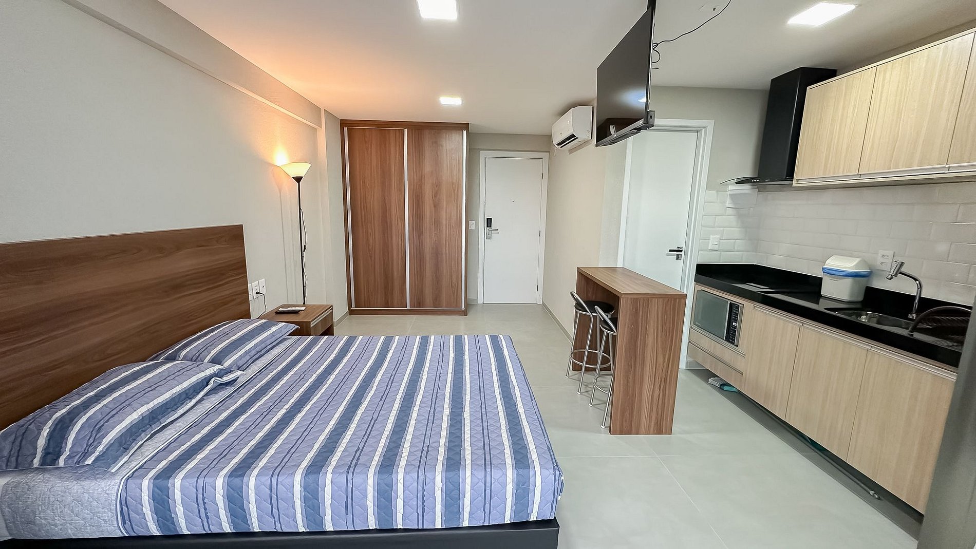 Desfrute do conforto com vista para a praia neste moderno e acolhedor apartamento, que acomoda até 2 pessoas. Cozinha totalmente equipada, ar-condicionado e uma vista deslumbrante do mar. O prédio oferece uma excelente infraestrutura, estacionamento gratuito. Uma experiência única aguarda por você neste refúgio, com um kit de chegada que inclui shampoo, condicionador, sabonete e papel higiênico. Completo com lençóis e toalhas para sua comodidade.