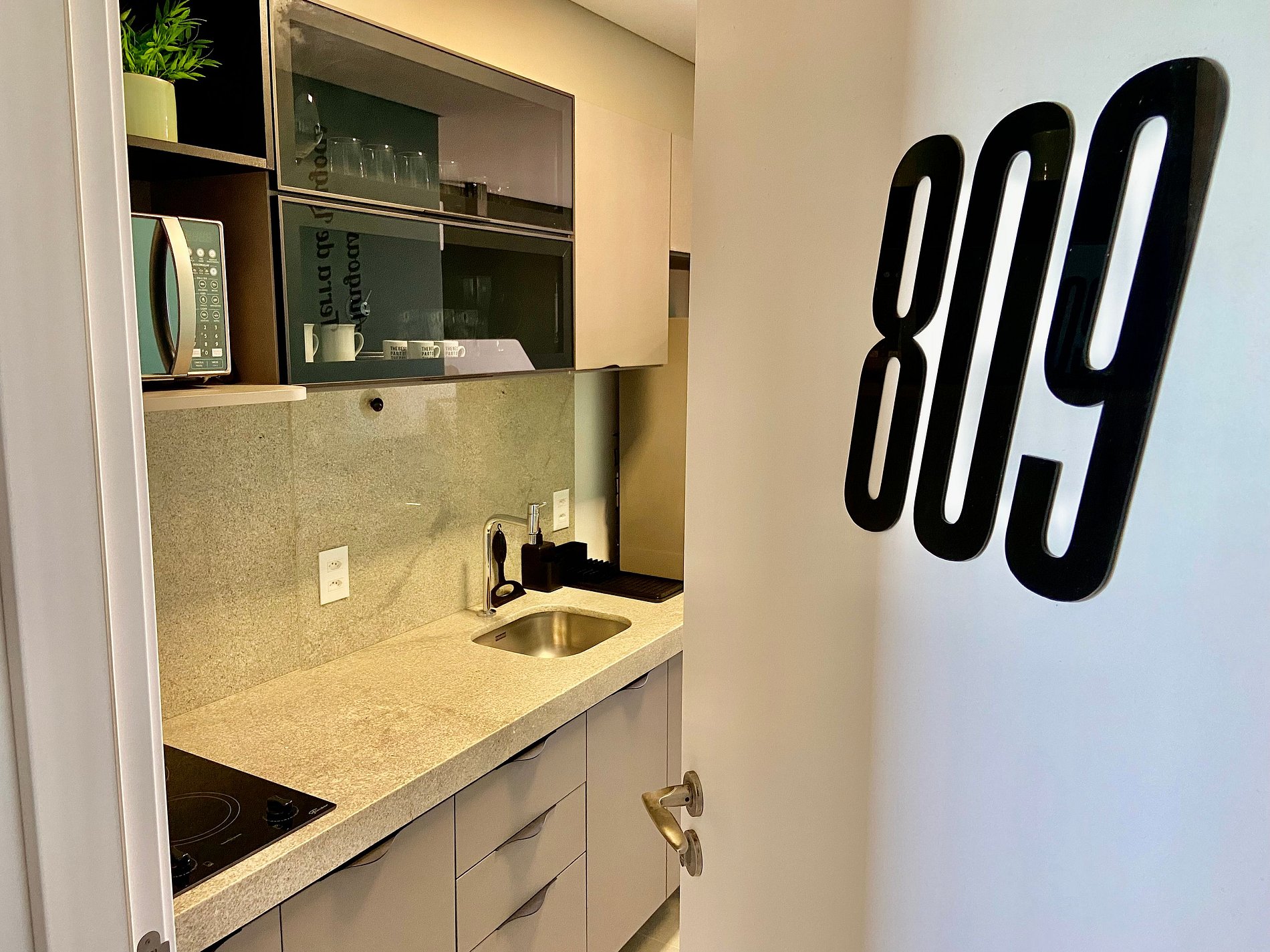 Remise des clés au Time Building dans la salle ER Hospedagens, réception 24h/24.