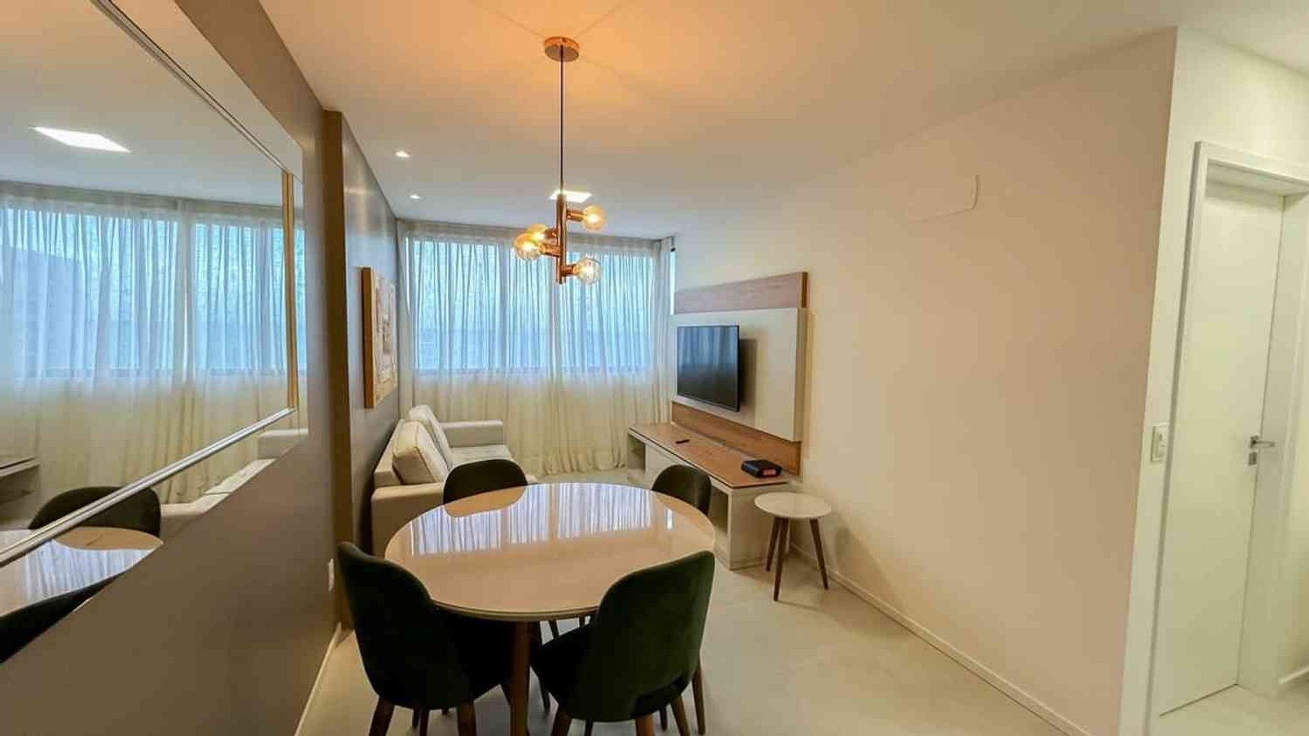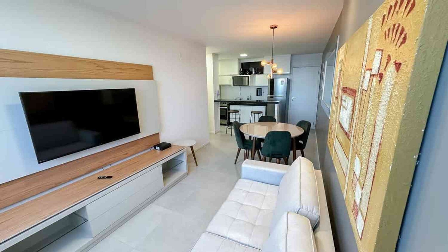 Unidade com designer clean e moderno, apartamento decorado e ambientado de uma maneira que exala sensação de paz e tranquilidade. Com cores predominantes claras que contrasta com tons mais escuros trás um charme e requinte com os itens de decoração.