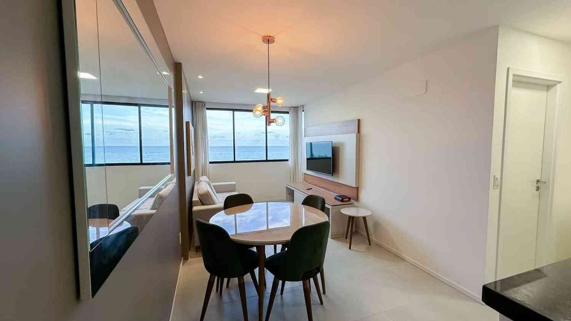 O apartamento é no 8° andar e proporciona uma incrível vista para o Mar. A unidade quarto e sala é bem aconchegante e ideal para duas pessoas poder disfrutar de experiencias incríveis e bons momentos na acomodação, que oferece uma estrutura completa para que se sintam em casa e tenham a sensação do mar te abraçando todas as manhãs e tardes.