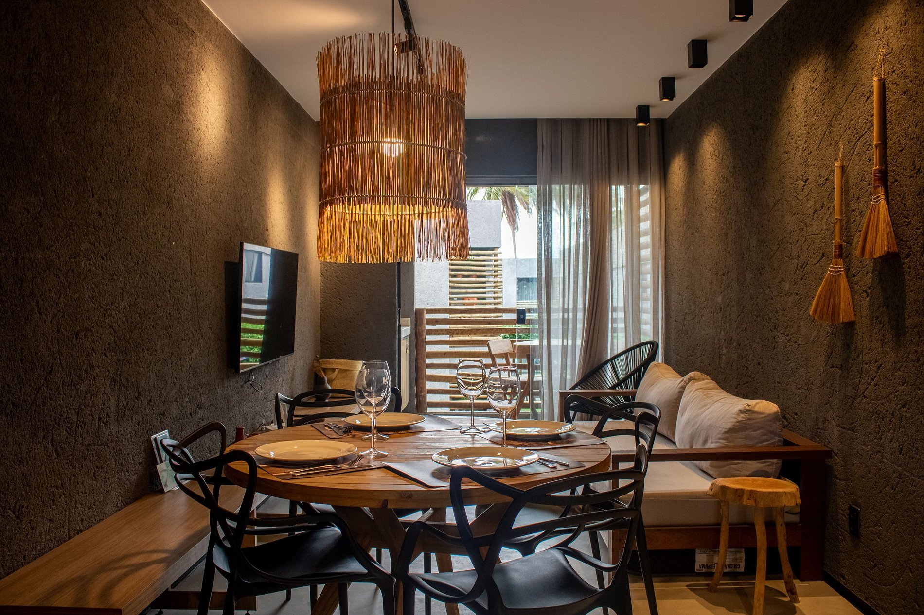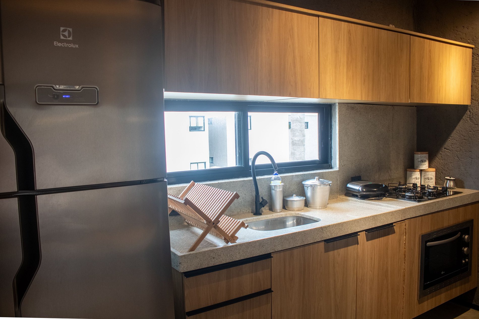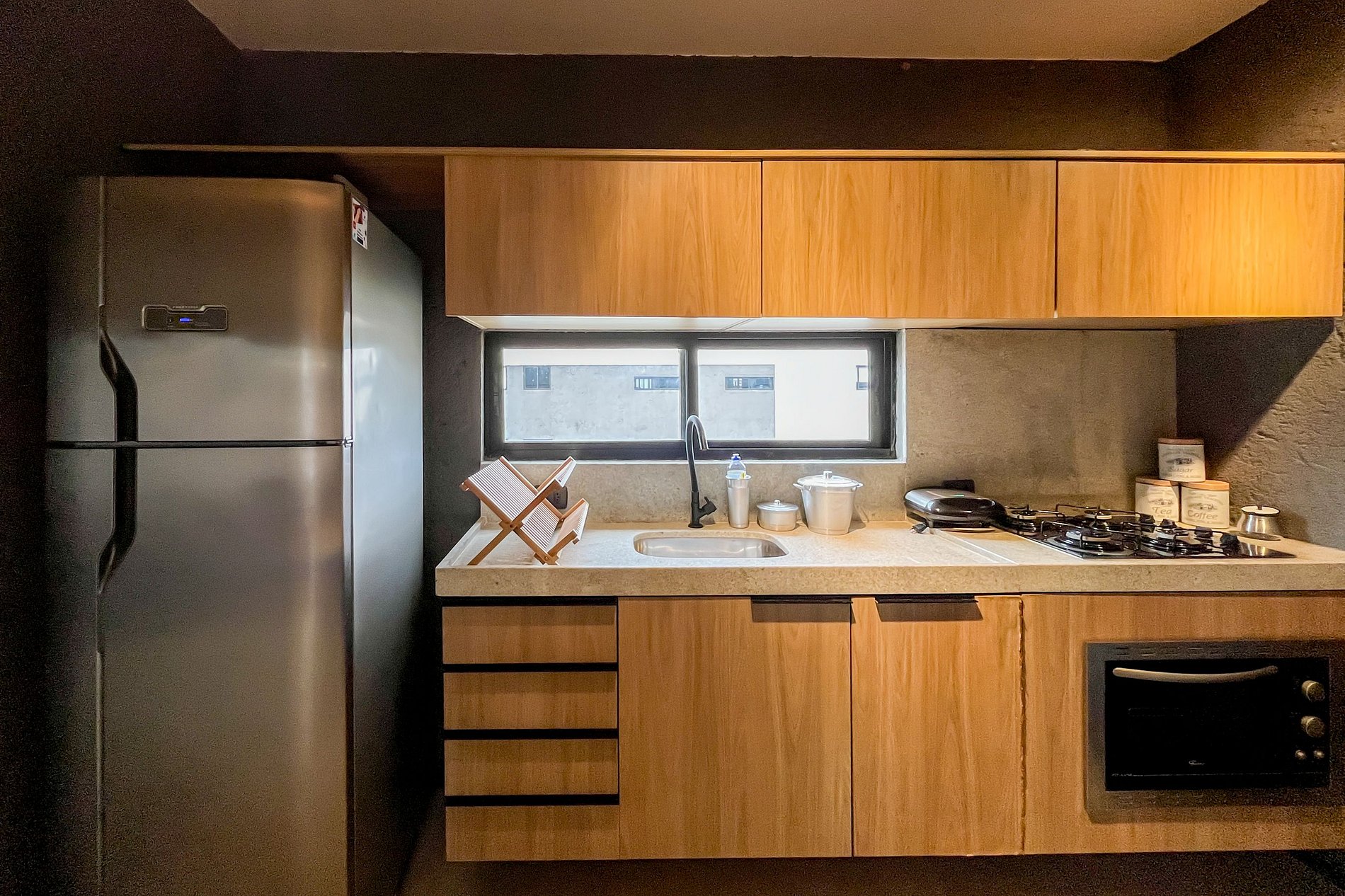 Os tons neutros e madeira natural criam um ambiente acolhedor. A cozinha é completa, a sala convidativa, duas suítes com quartos minimalistas e o banheiro elegante. Tudo impecavelmente limpo e organizado, com detalhes que transmitem conforto e praticidade. É o cenário perfeito para uma estadia serena e memorável. Pura harmonia convidativa!