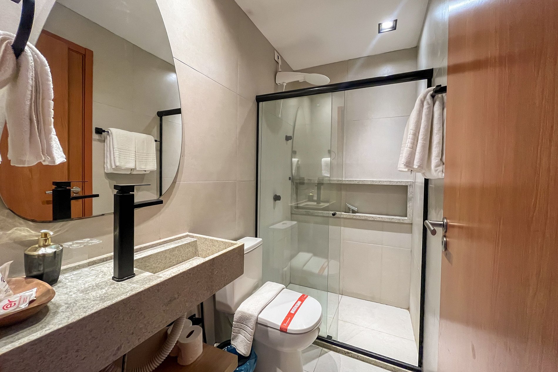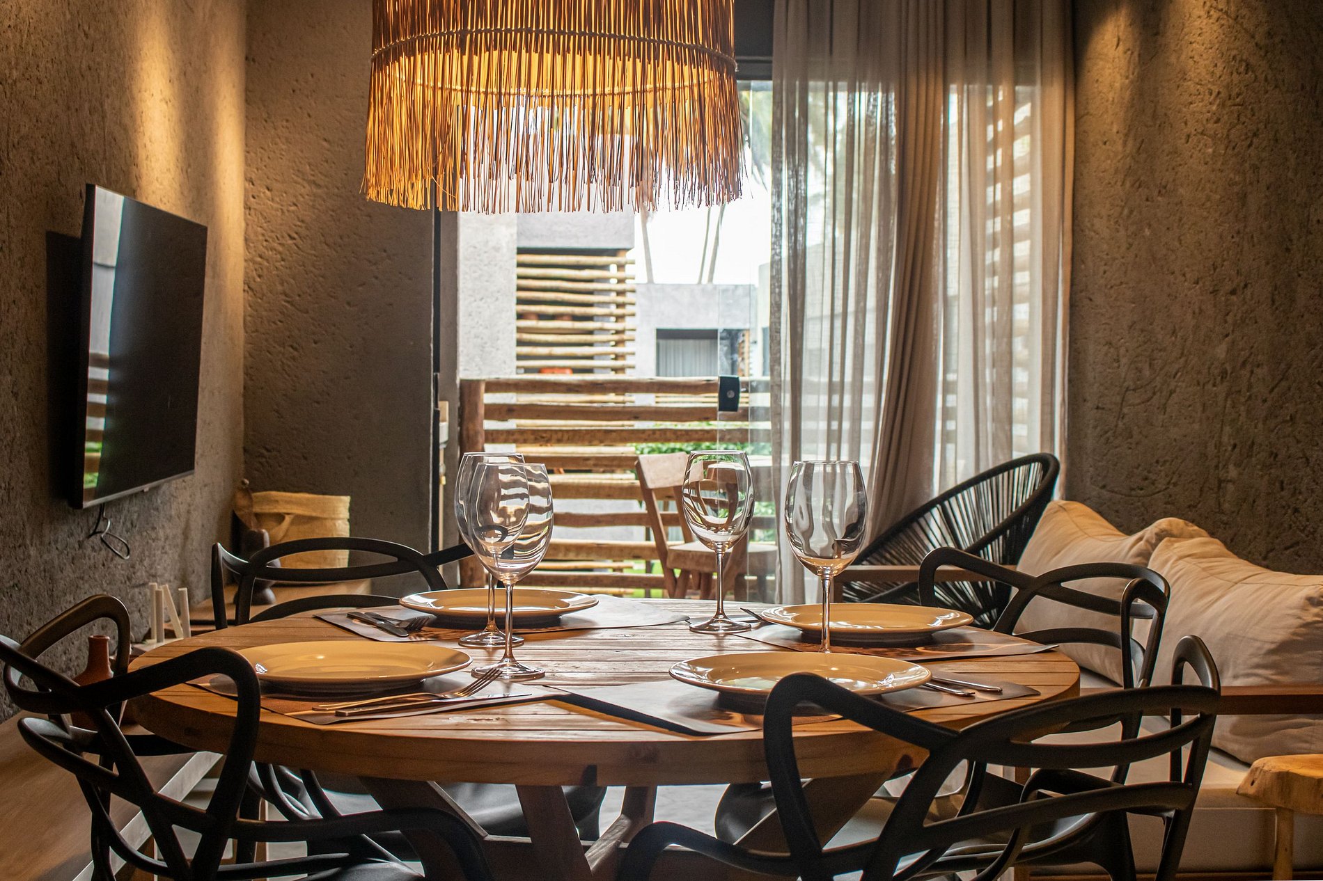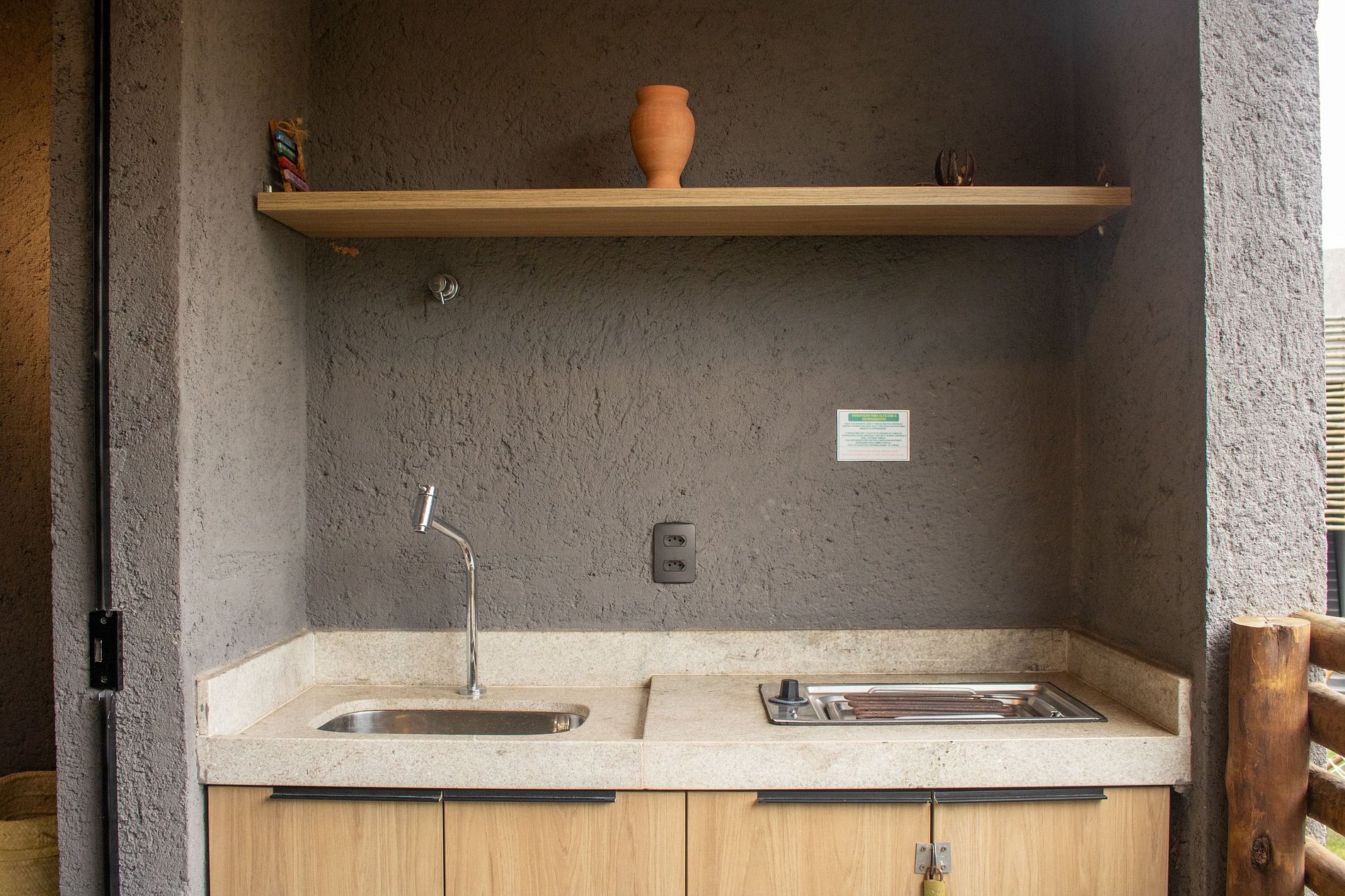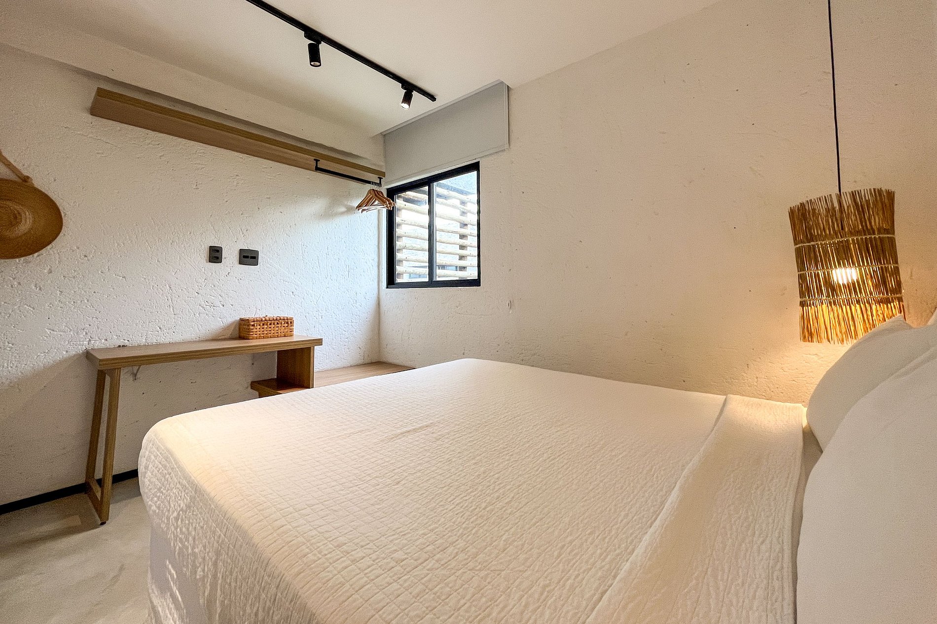 Os tons neutros e madeira natural criam um ambiente acolhedor. A cozinha é completa, a sala convidativa, duas suítes com quartos minimalistas e o banheiro elegante. Tudo impecavelmente limpo e organizado, com detalhes que transmitem conforto e praticidade. É o cenário perfeito para uma estadia serena e memorável. Pura harmonia convidativa!