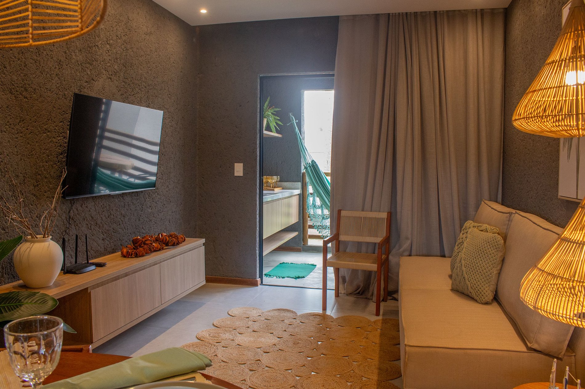 Área de estar com sofá/cadeira
