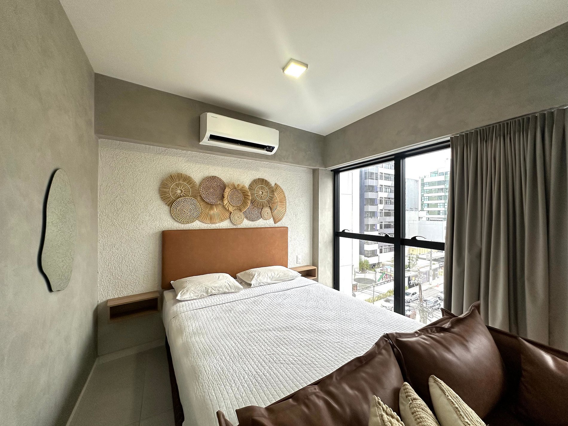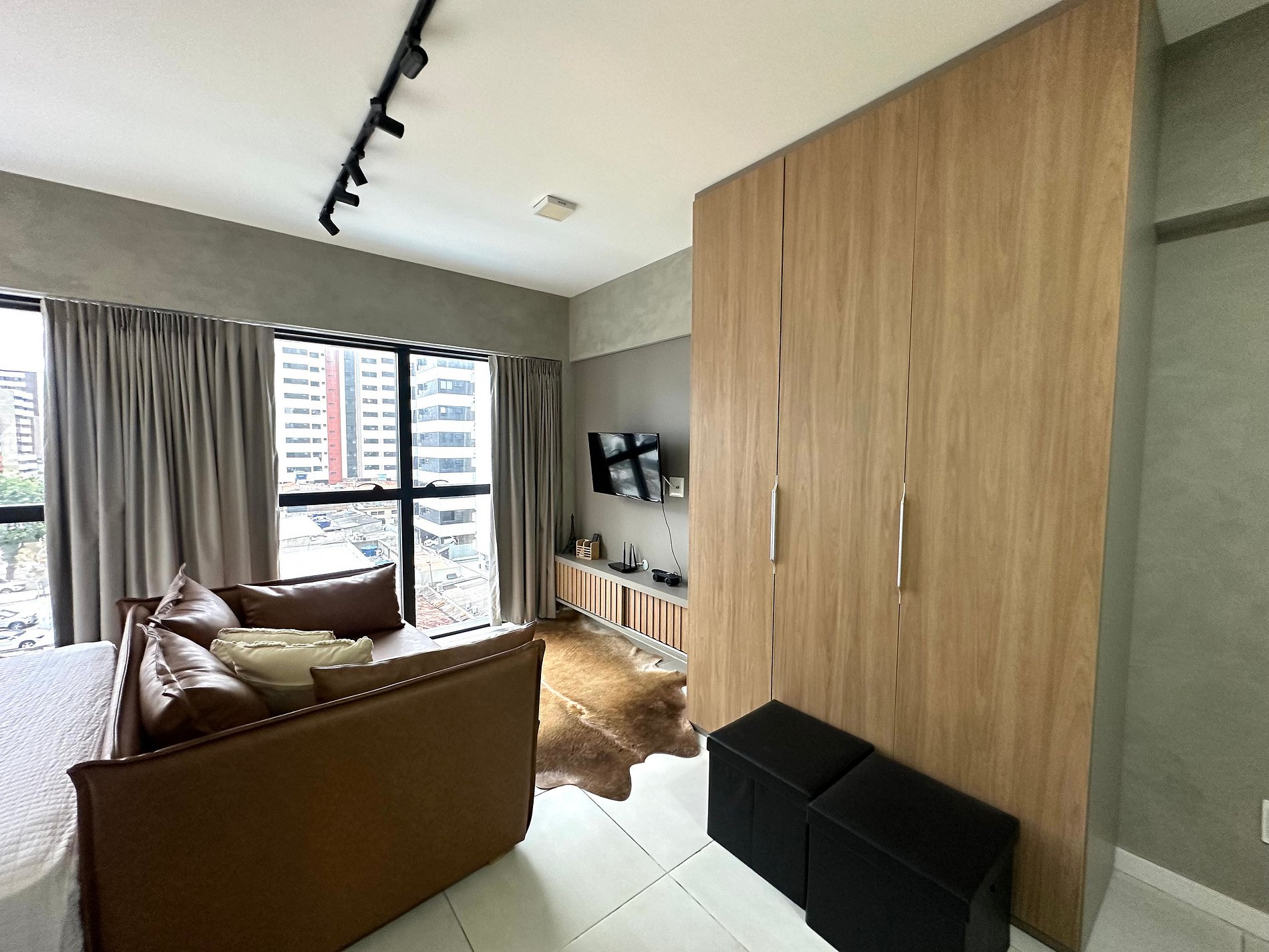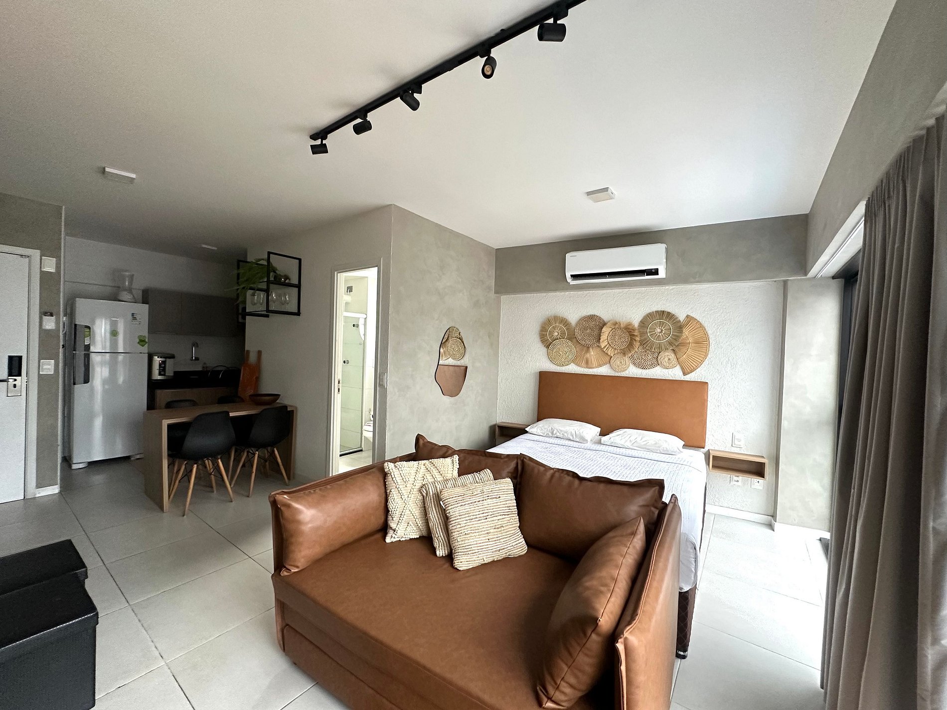 Conforto e Estilo em Cada Detalhe este moderno Studio de 32m² foi projetado para proporcionar uma experiência de hospedagem única. Com um design interior que combina elegância e aconchego, o espaço possui uma paleta de cores neutras que promove uma atmosfera de tranquilidade e sofisticação.