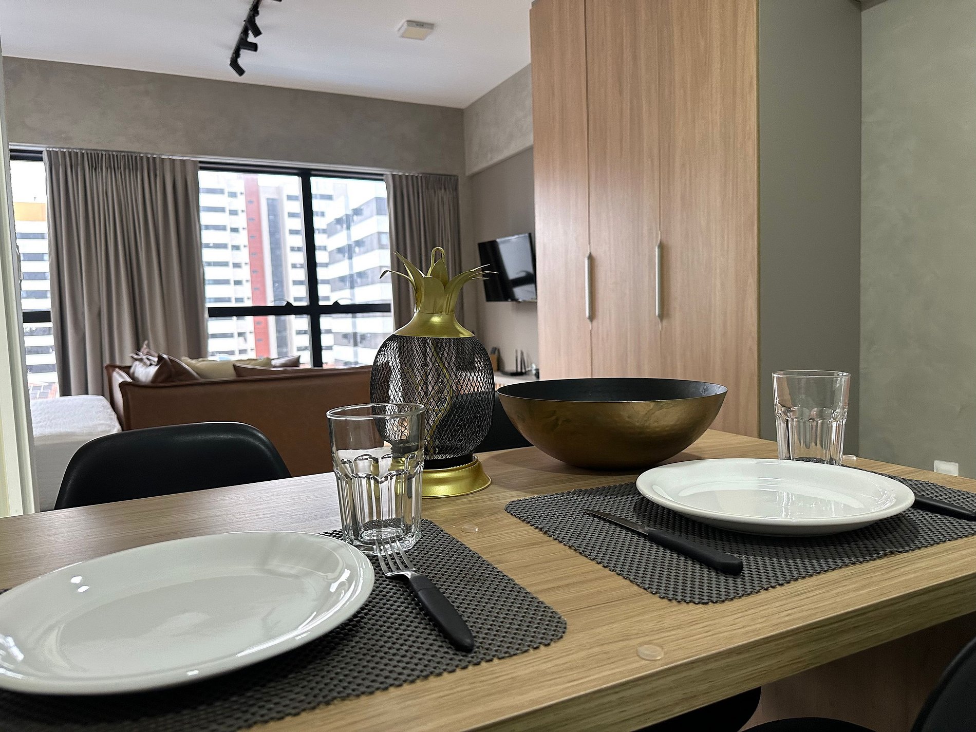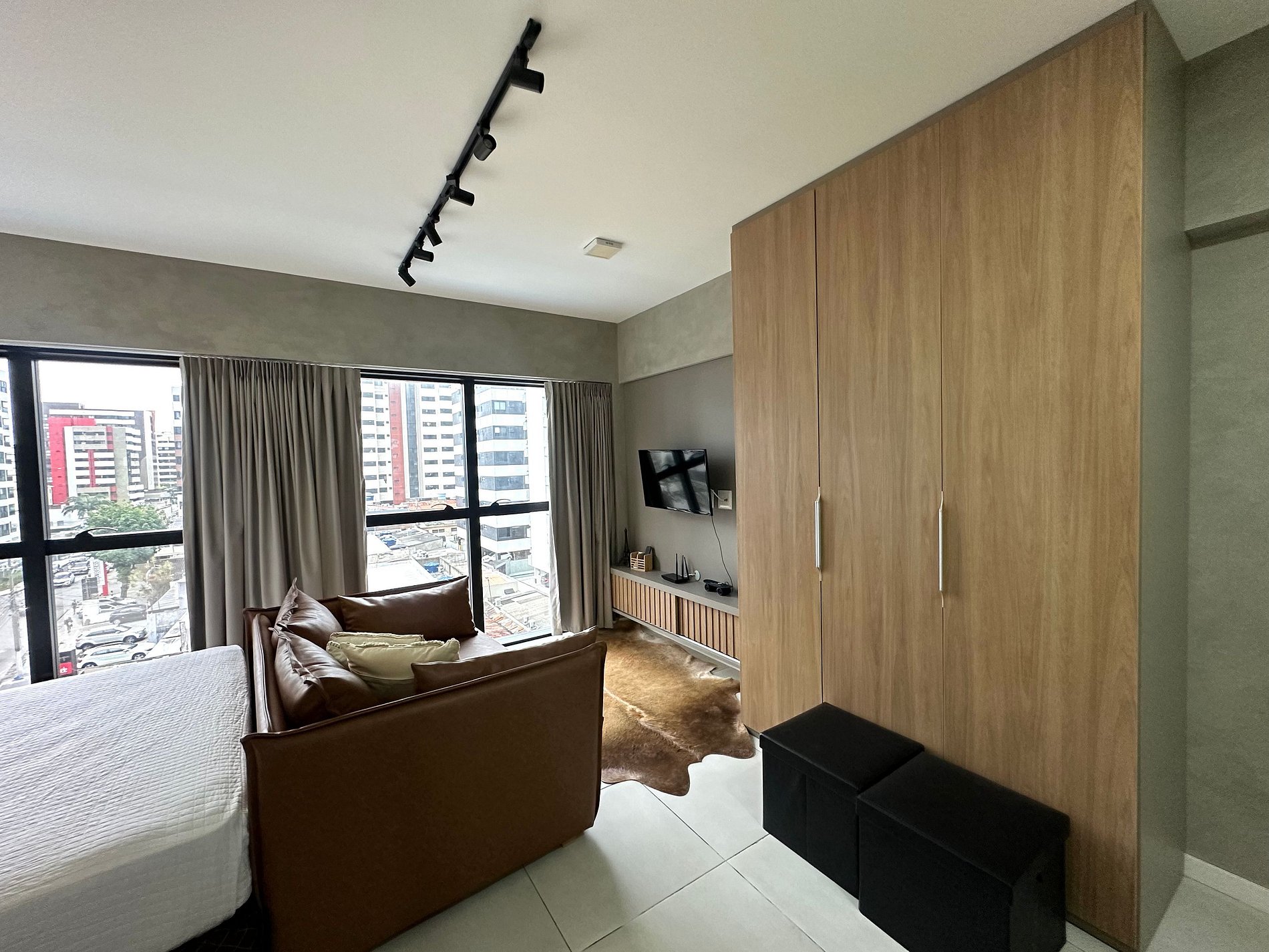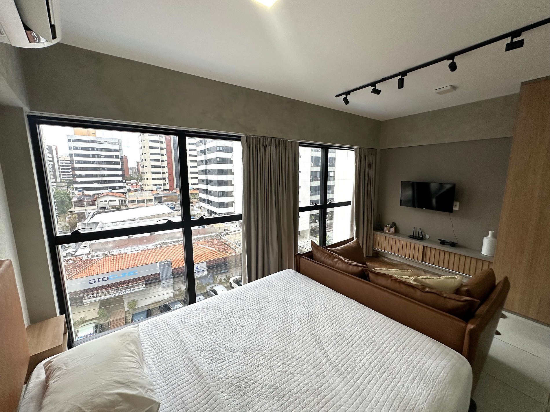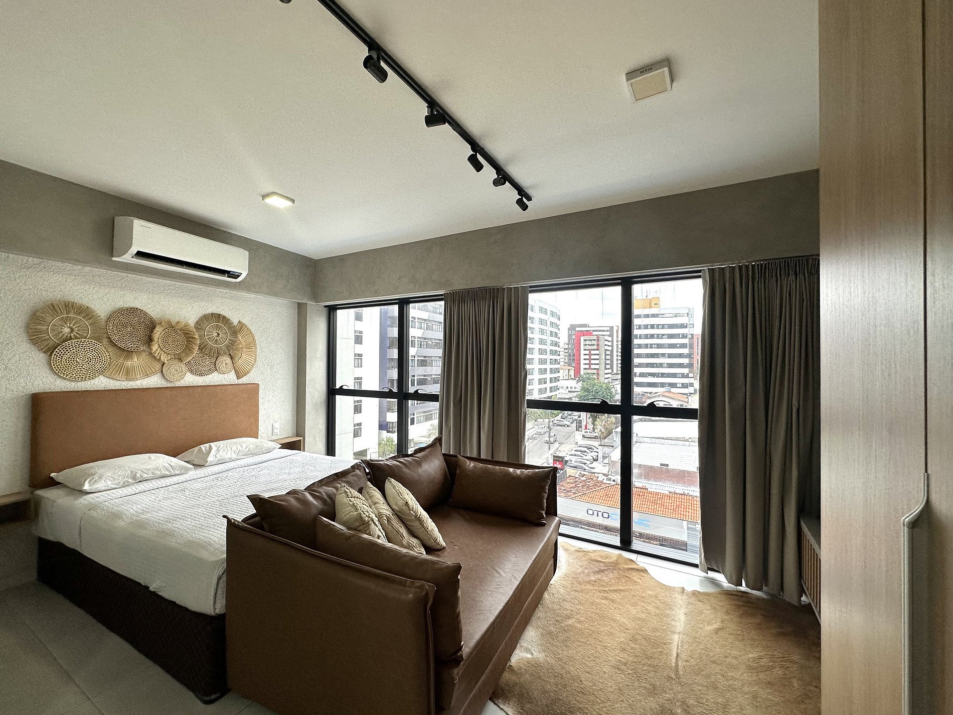 Conforto e Estilo em Cada Detalhe este moderno Studio de 32m² foi projetado para proporcionar uma experiência de hospedagem única. Com um design interior que combina elegância e aconchego, o espaço possui uma paleta de cores neutras que promove uma atmosfera de tranquilidade e sofisticação.