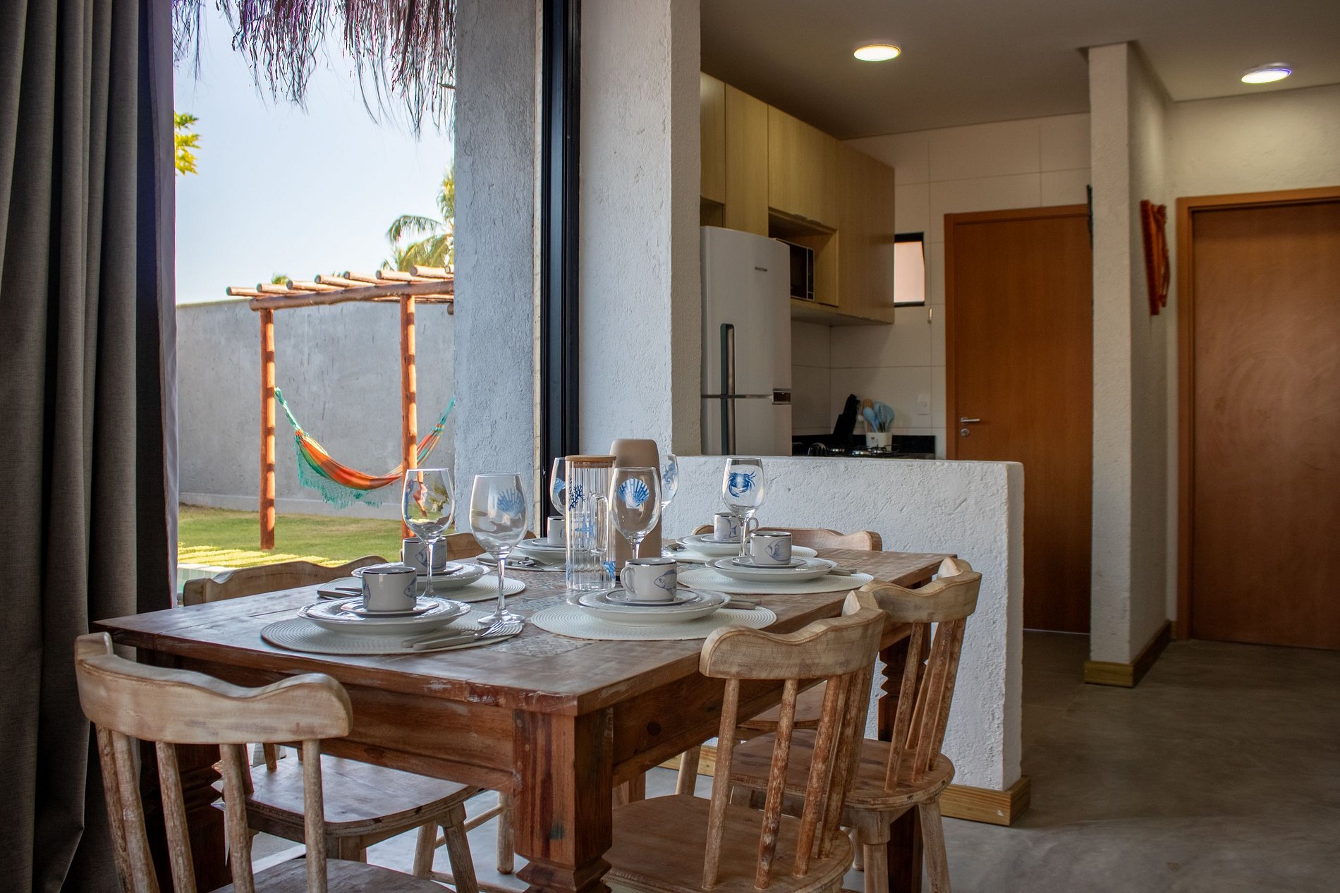 A casa recém pronta é completa e super bem equipada com utensílio de cozinha, área de serviço e uma excelente área de lazer, para trazer ainda mais praticidade, comodidade e conforto a sua estadia com família e amigos.