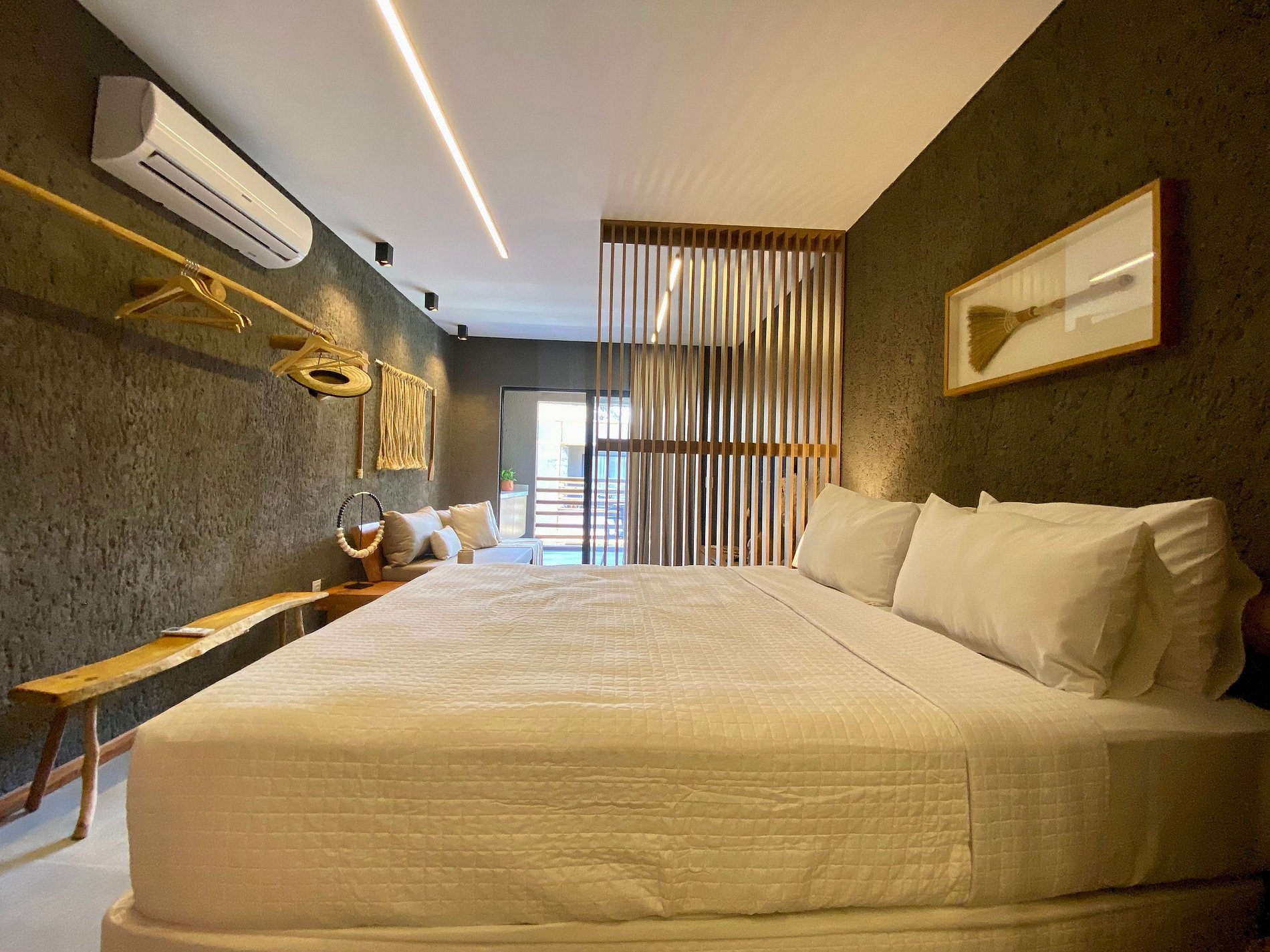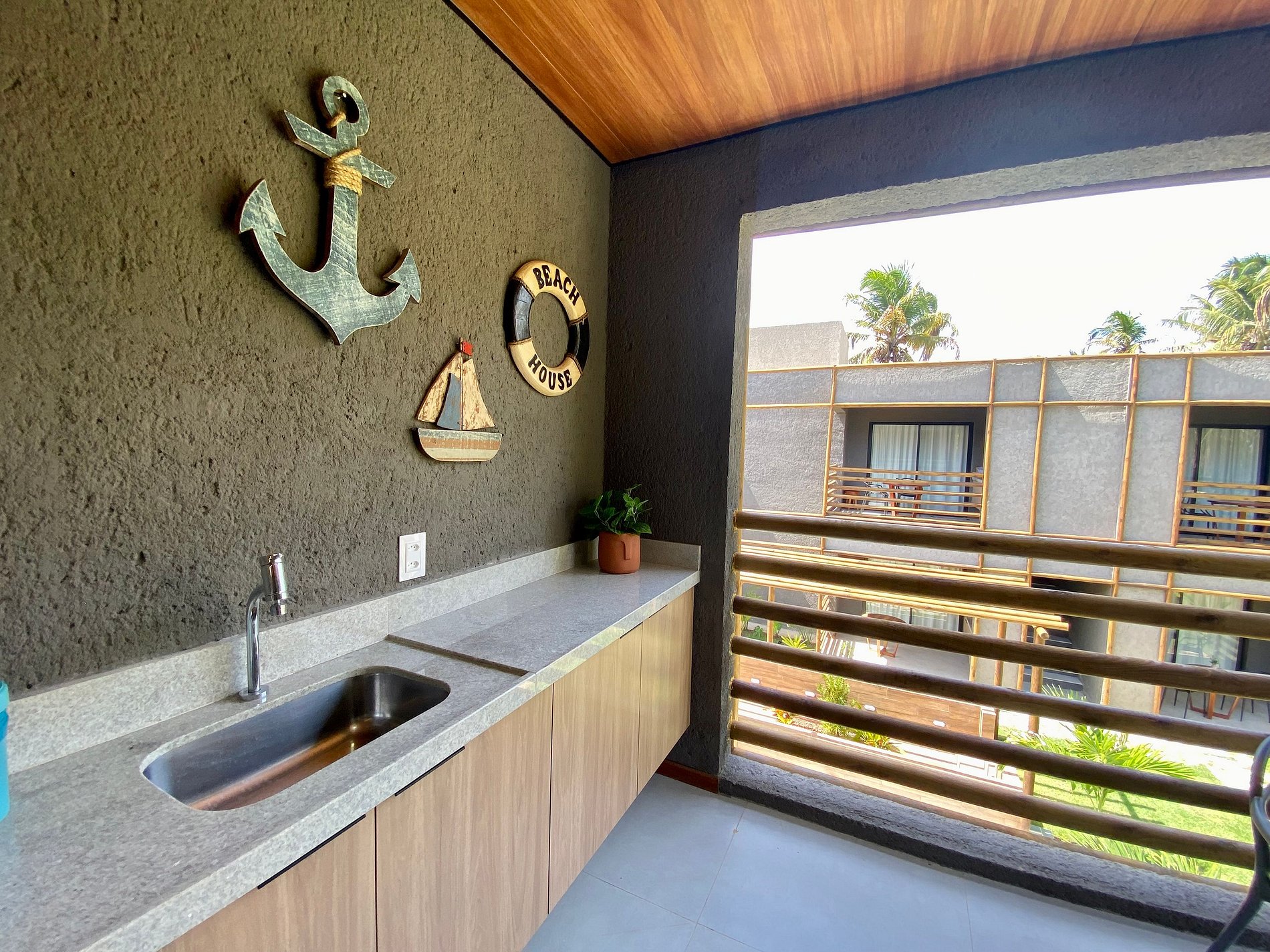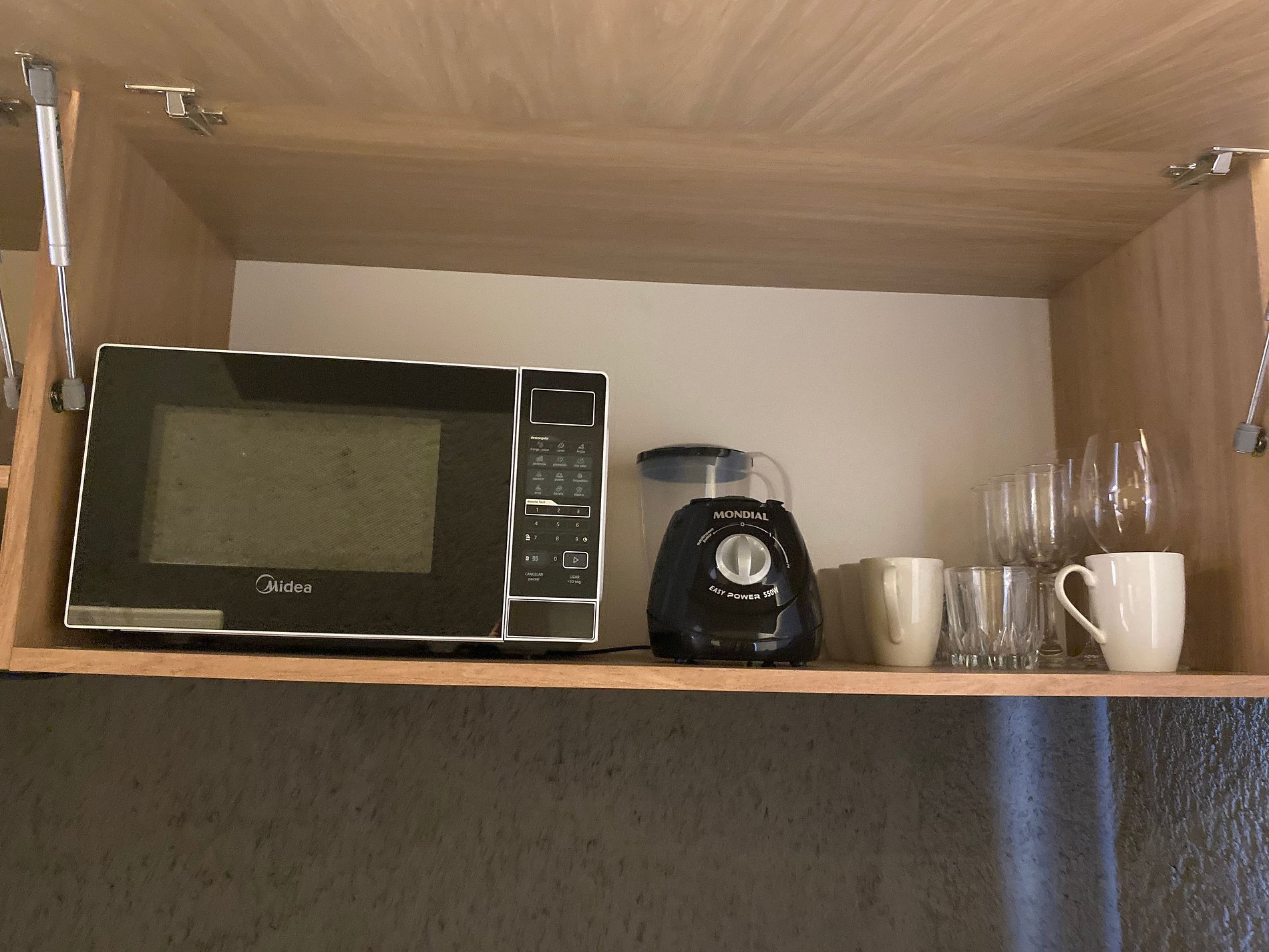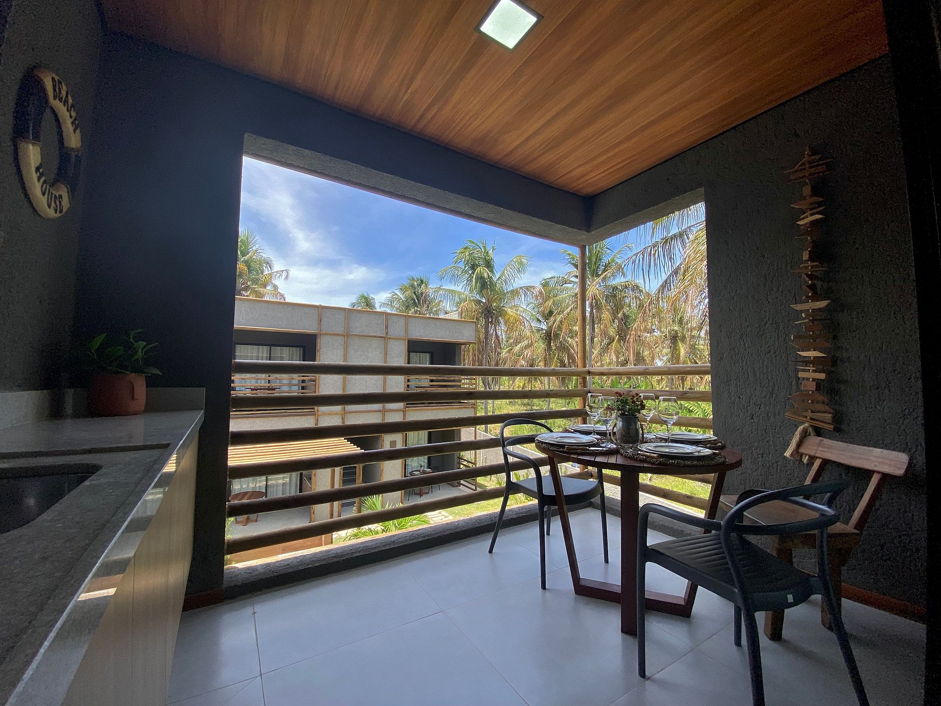 O Studio possui 37m2, com sala de estar com varanda gourmet, cozinha e 01 vaga de estacionamento.