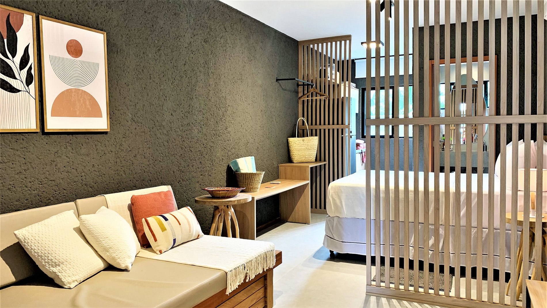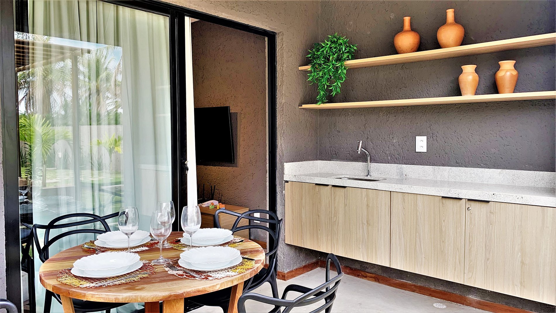 O Studio possui 37,15m2, com sala de estar com varanda gourmet, cozinha e 01 vaga de estacionamento.