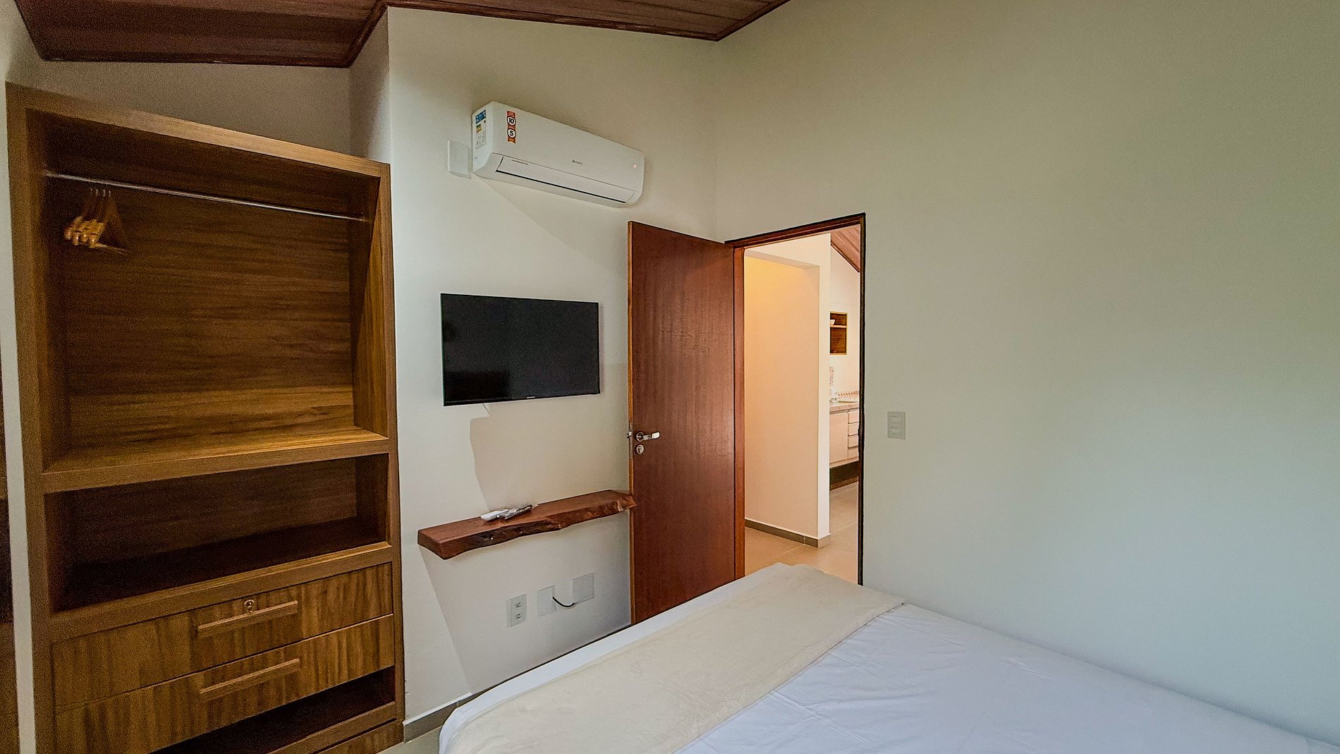 A presença do ar condicionado no quarto é um diferencial crucial, assegurando noites de sono agradáveis e uma temperatura ideal, independentemente do clima externo.